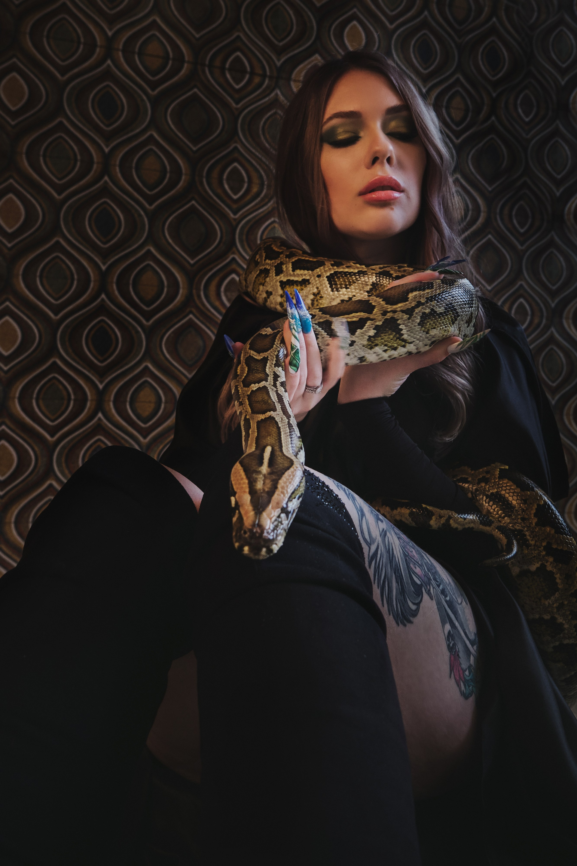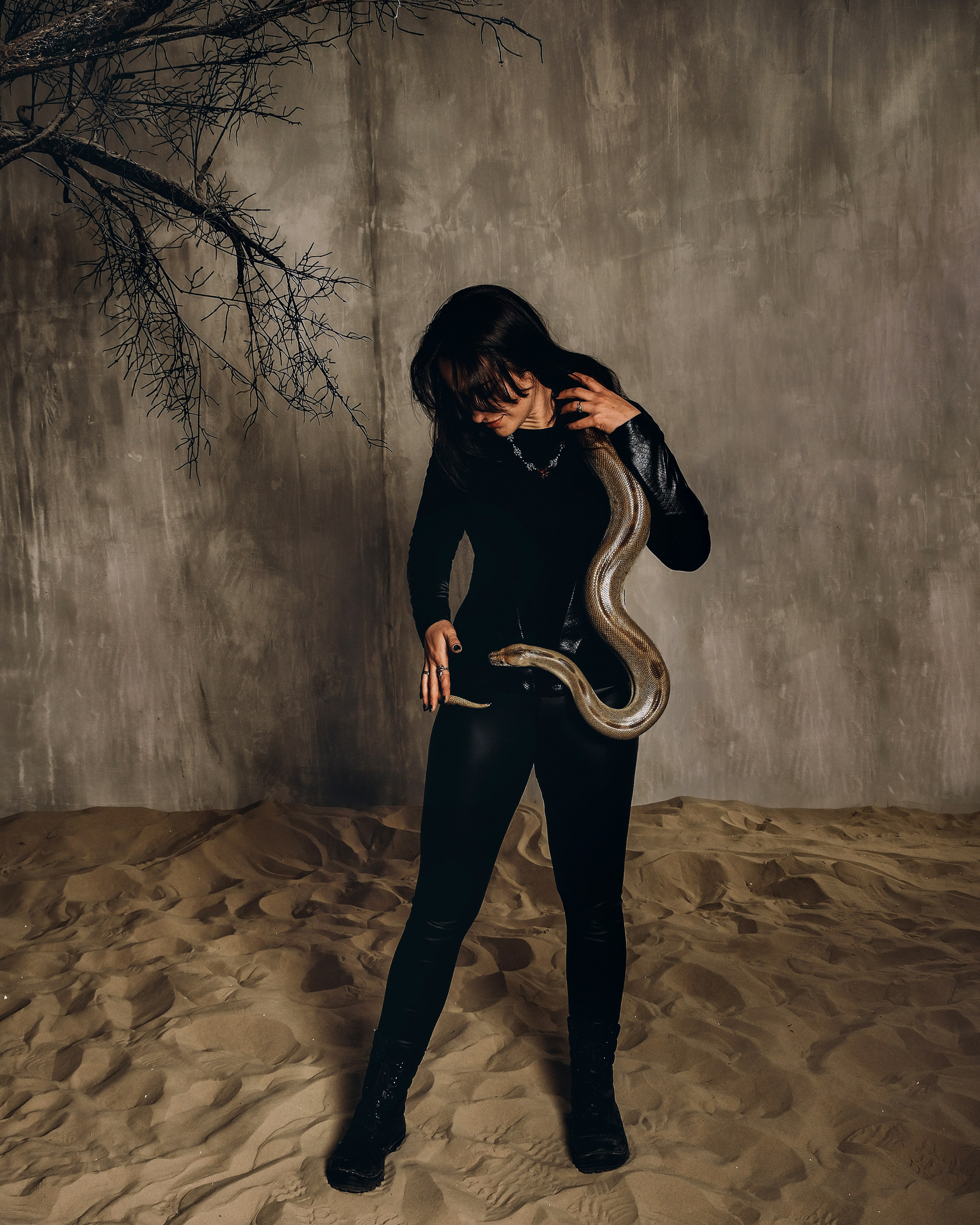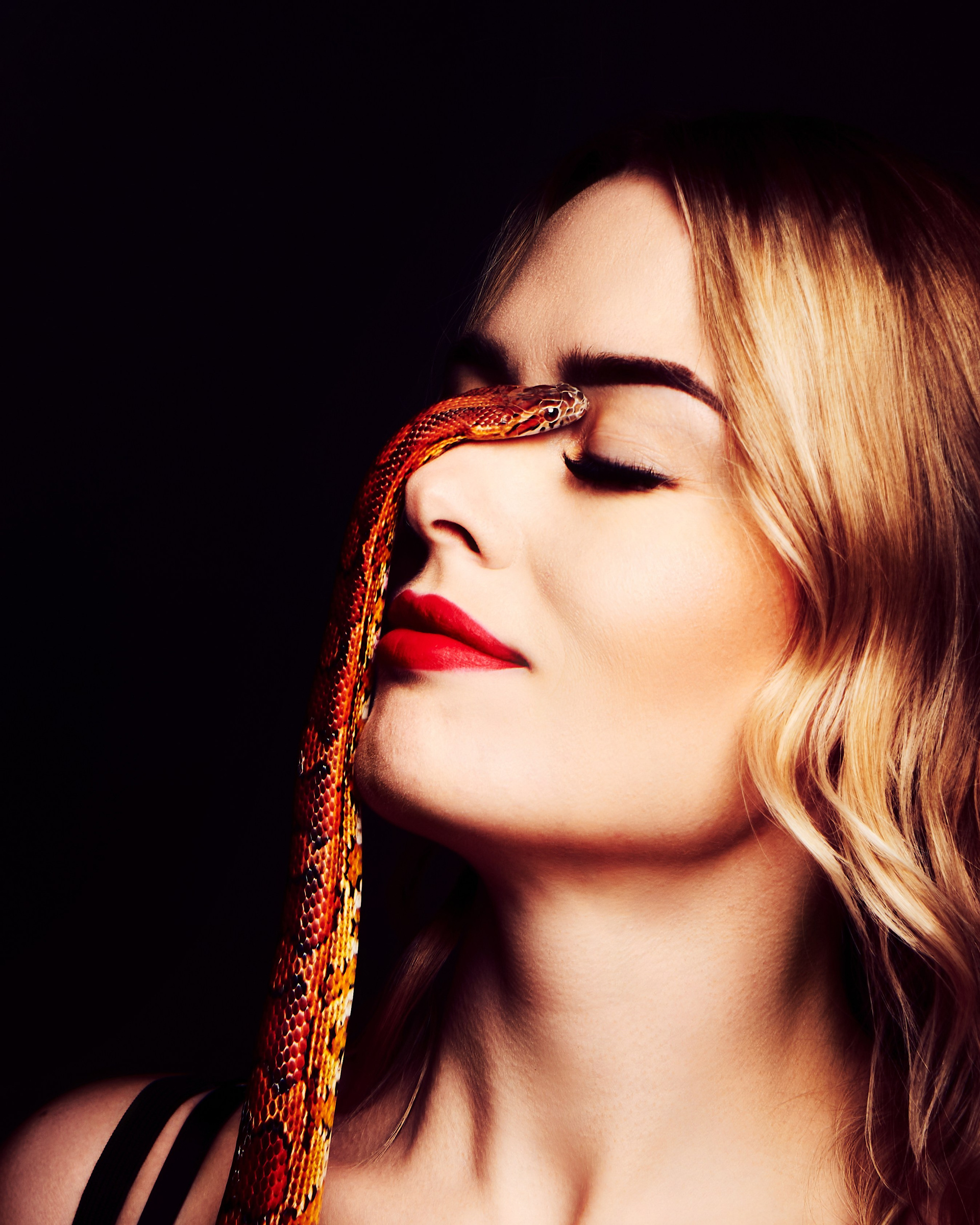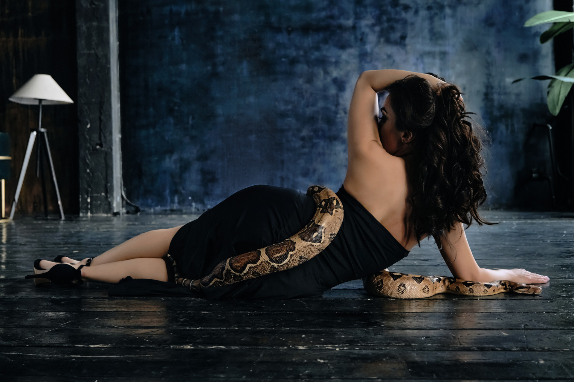 Фотосессия со змеёй в студии