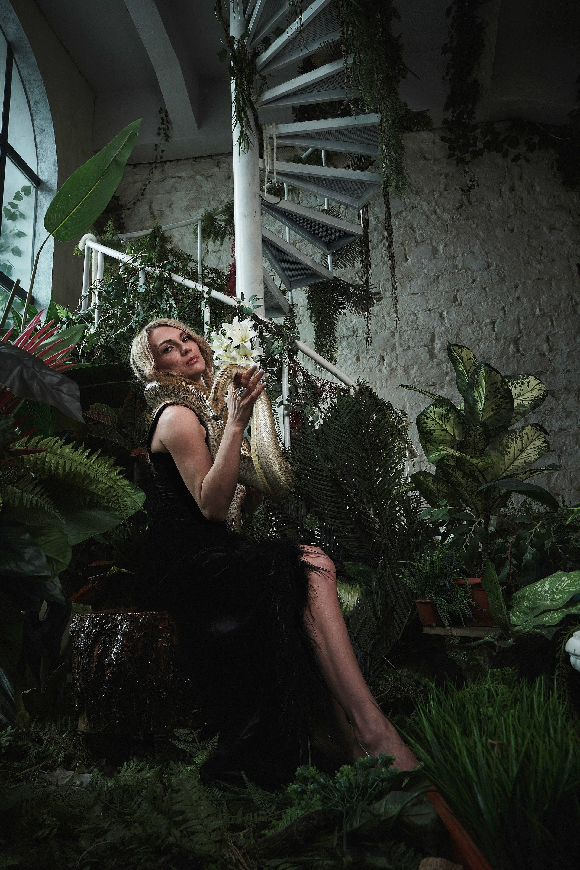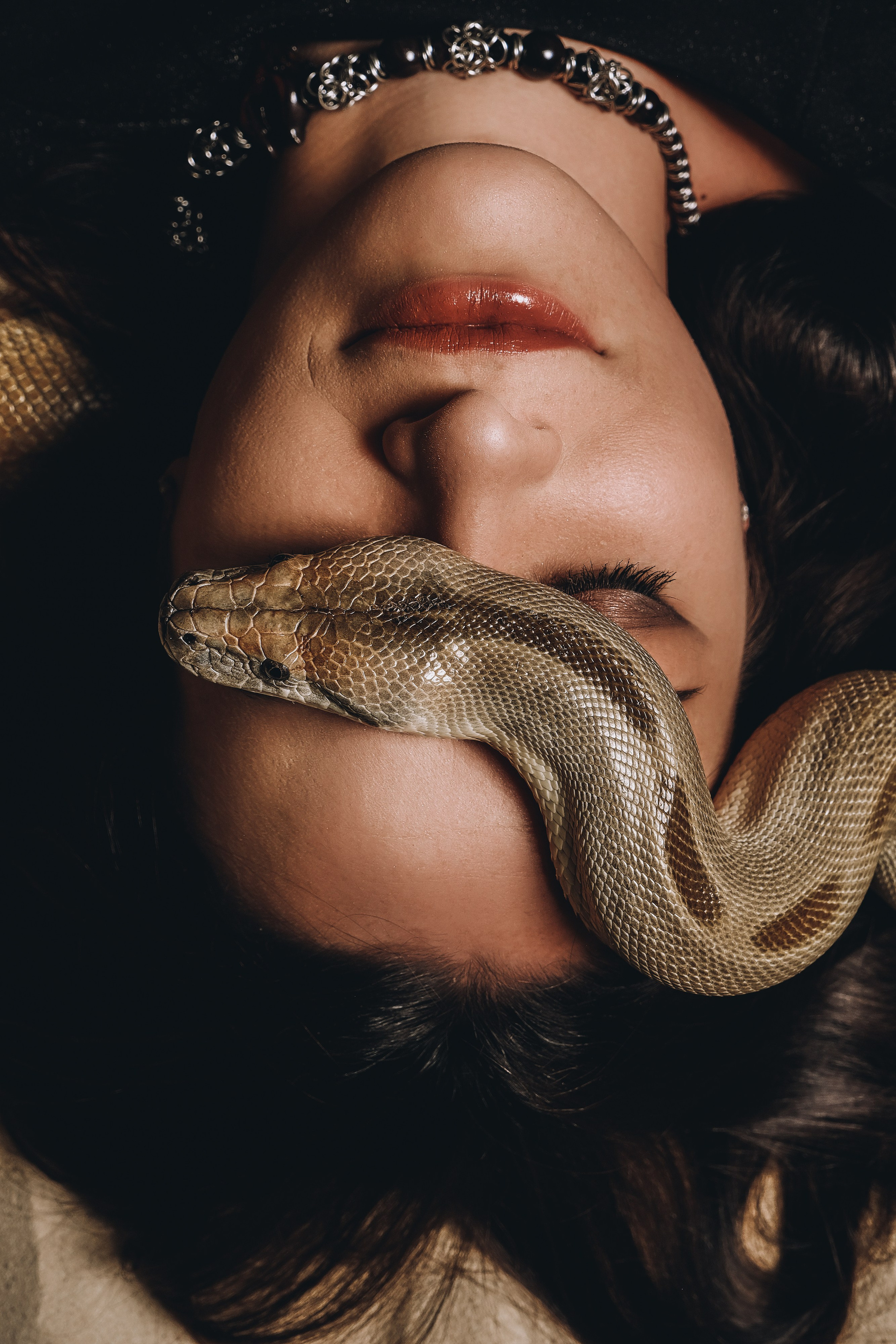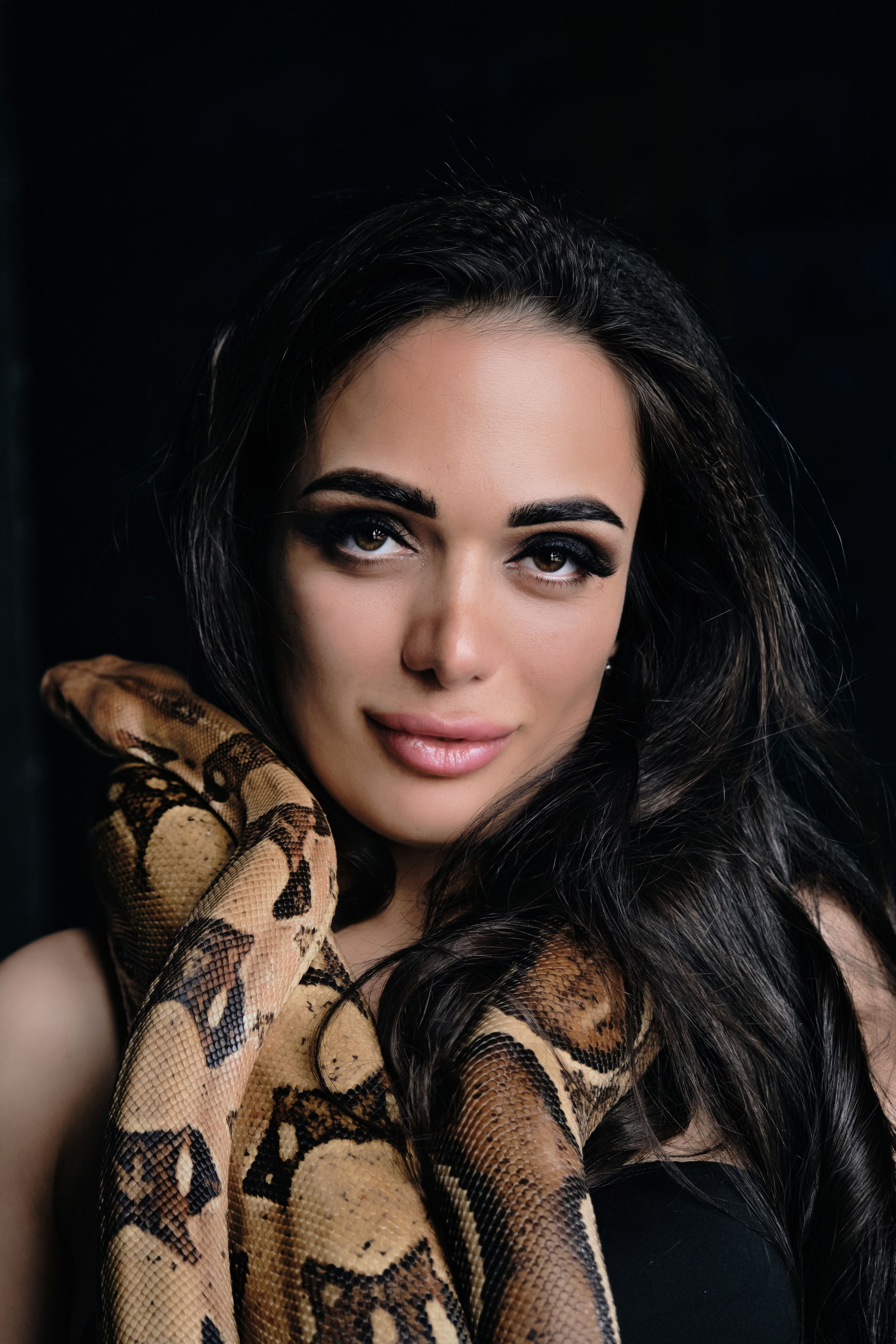 Фотосессия со змеёй в студии