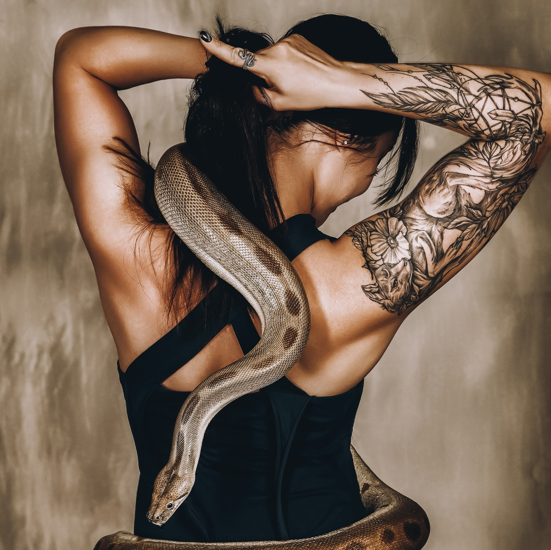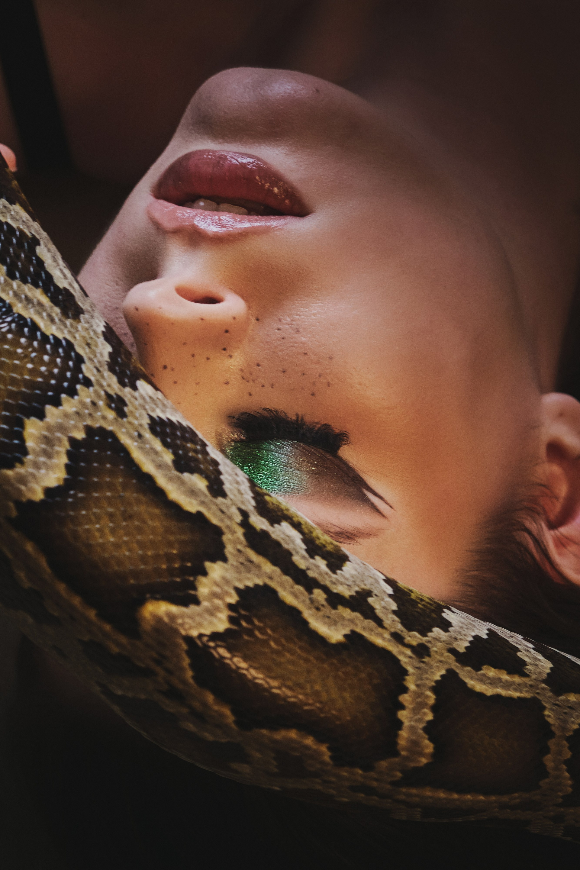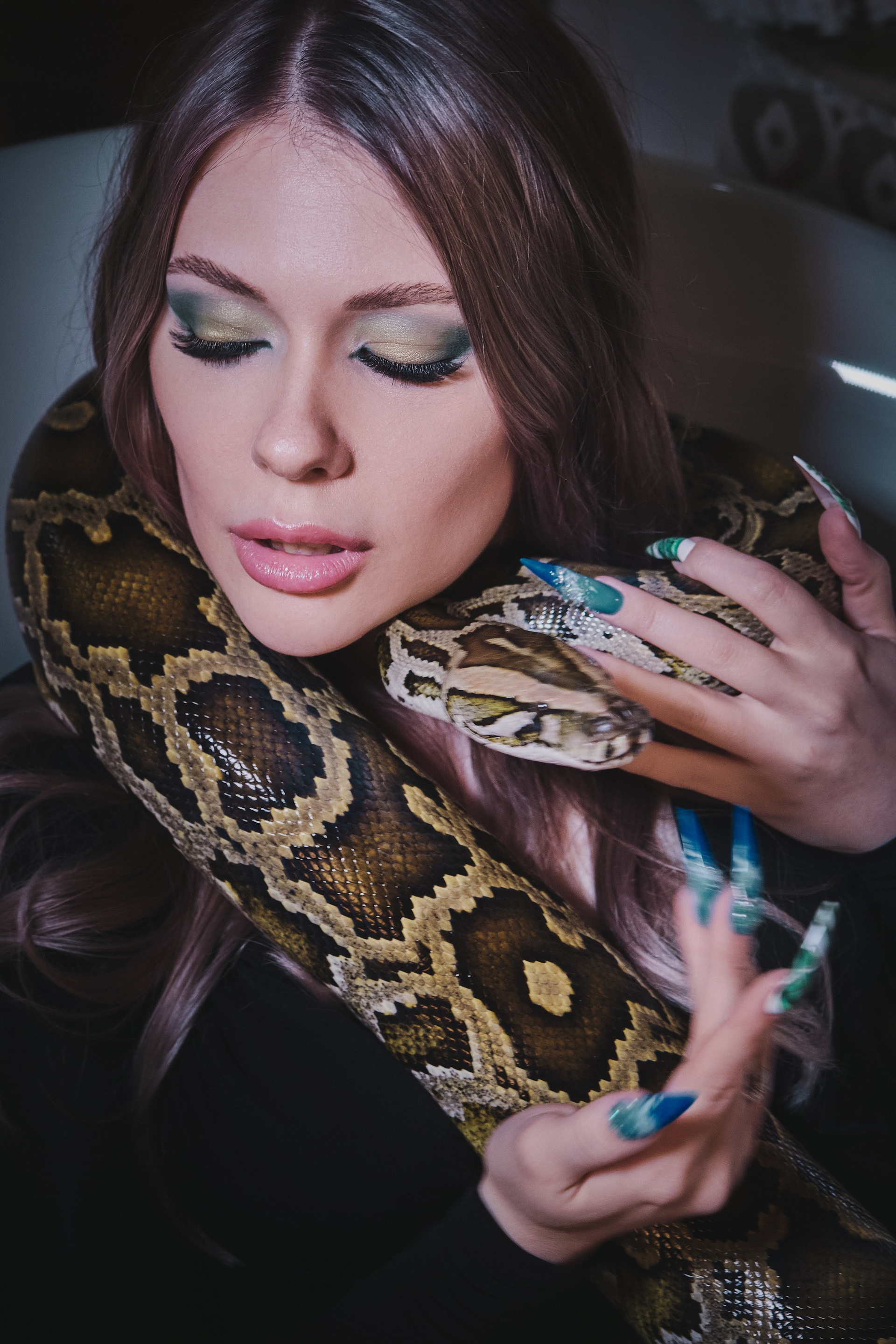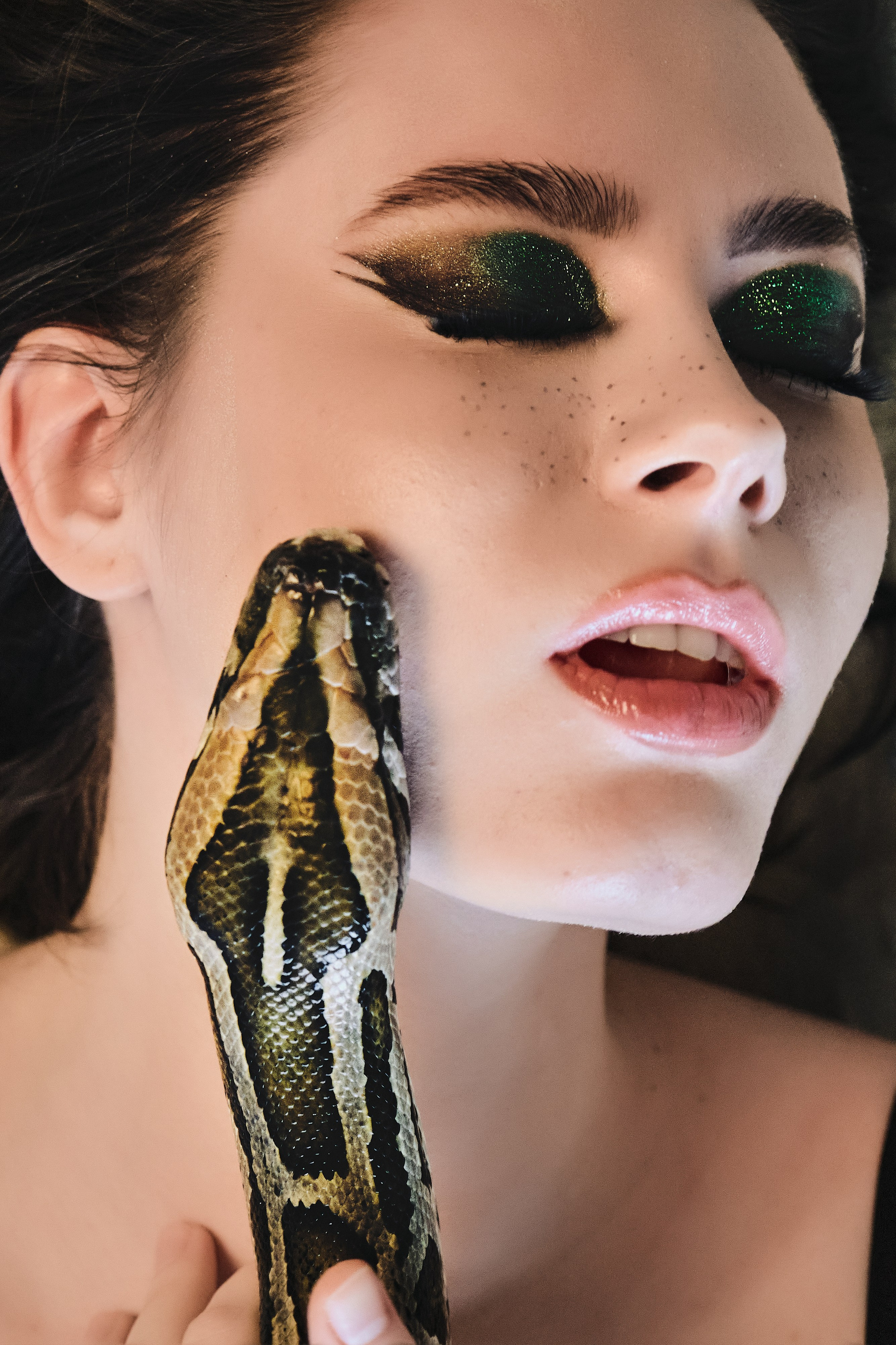 Фотосессия со змеёй в студии